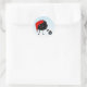 Mauvais autocollant de Noël drôle avec un insecte de grincement de bande dessinée noire qui déballage un cadeau de Noël.