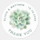 Complétez votre fête avec cet autocollant de remerciement personnalisé, avec une belle aquarelle succulente design entourée de vos noms, date mariage, et un message de remerciement. Parfait pour sceller les faveurs de mariage, les sacs de remerciement, les boîtes de bienvenue ou les enveloppes, cet autocollant rond succulent ajoute une touche naturelle et élégante à votre événement. Le succulent vert de l'aquarelle le rend particulièrement adapté aux mariages botaniques, rustiques, chic, désertiques ou inspirés du jardin, tandis que la forme ronde le garde classique et polyvalent.