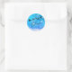 Des autocollants de Noël avec une silhouette noire de Père Noël dans son traîneau tiré par son renne volant à travers le ciel. Croyez écrit dans une police de script tendance. L'arrière - plan est un modèle de flocon de neige glacé bleu glacé.