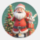 Sticker Rond Le Père Noël tient présent avec des lapins
