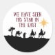 Les Sages Hommes, ou les Trois Rois, déclarèrent : Nous avons vu Son étoile en Orient! Cette citation est assortie d'une silhouette des Trois Rois suivant l'étoile. Cet autocollant serait amusant pour l'artisanat ou les cartes.