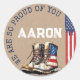 Les bottes de combat du drapeau américain Going Away / Farewell Party piochent et favorisent les autocollants ronds, avec un arrière - plan rustique Kraft, sont une façon personnalisée et mémorable d'envoyer et de célébrer votre courageux Airman (Air Force), Guardian (Space Force), Soldier (Army), Marine (Marines), marin (Navy), ou garde-côtes (Coast Guard) à l'instruction de base (BMT ou BCT), au camp d'entraînement, au déploiement ou à l'étranger. Parfait pour toute branche de service ! ** Conçu par une fière maman de la Force aérienne ** Si le nom de votre recrue ne correspond pas à l'espace, vous pouvez cliquer sur le bouton "Modifier la conception plus loin" au bas de l'écran "Personnaliser", et réduire la police! Faites défiler la page ci-dessous pour voir la collection complète de correspondances pour votre évènement parfait, y compris des invitations (disponibles pour téléchargement numérique instantané pour ceux qui sont pressés ou Zazzle print & ship + enveloppes), des panneaux d'accueil, des bannières de fête, des panneaux directionnels de pelouse, un livre d'invités mural, des décorations de table, et plus encore ! Cliquez sur le lien bleu "par FigLilyCo—militaire" dans le coin supérieur droit de cet écran pour visiter ma vitrine de Zazzle et voir ma collection de dessins pour partir des fêtes, l'entraînement de base, les cérémonies de remise de diplômes et le service actif! *Les demandes de design personnalisées sont toujours les bienvenues - cliquez sur le bouton "message", ou directement par e-mail (avec temps de réponse rapide !) : contact@figandlilyco.com. De cette fière famille militaire à vous et à la vôtre - nous vous adressons nos plus sincères bénédictions, et nos immenses remerciements pour le service, le courage et le sacrifice de votre futur militaire américain ♥