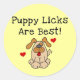 Un mignon chien brun avec sa petite langue pendante, les coeurs rouges, et le texte noir qui dit "Les léchettes de chiot sont les meilleurs !" sur les T-shirts, sweat - shirts à capuche, sacs fourre-tout, cartes, autocollants, boutons, tasses, et plus encore.