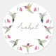 Joli autocollant personnalisé avec une couronne d'aquarelle des colibris d'Anna et des fleurs sur un arrière - plan blanc. Le style de police, la taille de police et la couleur de police peuvent être modifiés en cliquant sur "Modifier à l'aide de l'outil de conception". Toutes les images de colibris sont tirées d'aquarelles originales.