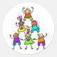 Un joli dessin animé représentant un groupe de garçons et de filles en petit bâton debout les uns sur les autres pour former une tour triangulaire de soutien et d'unité. Customisez facilement et choisissez votre propre couleur arrière - plan ou ajoutez du texte. Image disponible sur divers cadeaux et produits.