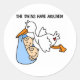 Adorable T-shirts, tasses, sacs fourre-tout, boutons, et autres articles jumeaux avec une cigogne portant une couverture bleue avec deux bébés garçons souriants et le texte "Les jumeaux sont arrivés !".