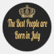 Cet autocollant circulaire affiche une image d'une couronne avec un texte jaune indiquant que les meilleures personnes sont nées en juillet. C'est le cadeau parfait pour la personne qui fêtera son anniversaire en juillet. Commandez aujourd'hui !