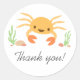 Le baby shower mignon ou l'anniversaire vous remercient des autocollants comportant un petit style de kawaii, un crabe jaune, une algue verte et des roches. Le texte personnalisable "vous remercient". Coordonnées avec la même invitation de baby shower de style.