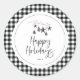 Moderne simpliste nature douillette, autocollant de vacances. Branche aquarelle ornée de pinecones et d'ornements décoratifs étoiles, design de typographie chic avec bordure motif plaid tendance.