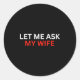 Sticker Rond Let Me Ask My Wife, She Said No Funny Saying