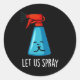 Sticker Rond Let Us Spray Funny Praying Bottle Pun Dark BG