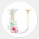 Sticker Rond Lettre aquarelle U avec des roses