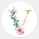 Sticker Rond Lettre aquarelle V avec des roses. Personnalisez e