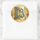 STICKER ROND LETTRE BLEUE OR B AVEC MONOGRAM FLEURS