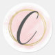 Sticker Rond Lettre C Monogramme Aquarelle rose pâle Chic or