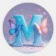 Sticker Rond Lettre colorée M aux papillons