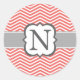 Sticker Rond Lettre corail blanc monogramme N Chevron