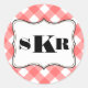 Sticker Rond Lettre en vichy 3 monogramme rouge style pays
