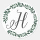 Sticker Rond Lettre H Monogramme Couronne de Feuilles Botanique
