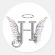 Sticker Rond Lettre H Monogramme initial avec ailes angéliques