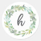Utilisez ce design épuré avec une couronne de verdure à feuilles d'eucalyptus et une lettre monogramme H pour une variété d'occasions : sacs de faveur, scellés d'enveloppe, etc.