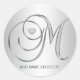 Sticker Rond LETTRE INITIALE M D'ARGENT Élégant Personnalisé
