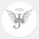 Sticker Rond Lettre J Monogramme initial avec ailes angéliques