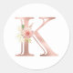 Sticker Rond Lettre K en Monogramme Or Rose Fleur Rose Pâle Feu
