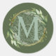Sticker Rond Lettre M Monogramme Feuilles verts botaniques init