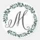 Sticker Rond Lettre M Monogramme Mini-feuille végétale