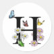 Sticker Rond Lettre moderne H Jardin Papillon Monogramme