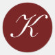 LETTRE BLANCHE Classique Monogramme sur Sticker Arrière - plan rouge foncé Modèle, "K"