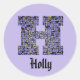Customisez le nom et la couleur arrière - plan pour créer facilement un autocollant unique qui est unique en son genre. La lettre H en vitrail en mosaïque est époustouflante dans les tons violets. Le prénom, le nom de famille ou tout autre libellé que vous souhaitez ajouter peuvent facilement apparaître sous le monogramme H.