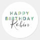 Sticker Rond Lettres bleues vertes personnalisées Joyeux annive