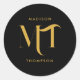 Sticker Rond Lettres d'initiales de monogramme noir et or éléga