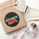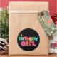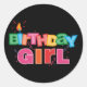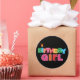 Design amusant pour la fille d'anniversaire avec un texte coloré qui dit BIRTHDAY GIRL, une joyeuse bougie d'anniversaire et des serpentins. PinkInkArt original !