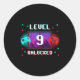 Sticker Rond Level 9 Unlocked Video Gamer Funny 9th Birthday Bo
