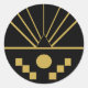 Un soleil doré art déco se lève dans un ciel noir. Enveloppe ronde/autocollant.