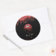 Autocollant rond à lèvres et crocs de vampire Halloween modifiable. Le design présente des lèvres rouges qui dégoulinent de sang et des crocs de vampire sur fond noir ! Des paillettes rouges glamour et des étincelles décorent la moitié inférieure de l'autocollant. Personnalisez le texte et changez le style et la couleur de la police pour convenir. Repositionnez et supprimez le texte à l'aide de l'outil de conception si nécessaire. Les paillettes ne sont pas des "vraies" paillettes mais un effet imprimé.