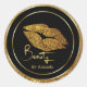lèvres parties scintillant or, autocollant rond noir et or.
