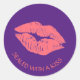 Sticker Rond Lèvres Roses Scellées Avec Un Baiser