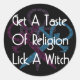 Celui-ci existe depuis un certain temps : "Prenez un goût de religion. Lick a Witch." Une bonne façon d'introduire des choix spirituels alternatifs en faisant sourire les non-sorciers et réaliser que les différences ne sont pas une menace, mais au contraire aider à créer un monde diversifié et plus tolérant.