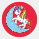 Sticker Rond Licorne Lune Bleue Céleste et Étoiles Arc-en-Ciel