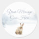 Personnalisez votre nom sur ce chic autocollant de vacances avec un lièvre sur un arrière - plan de bois hivernal.