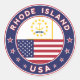 Badge de Rhode Island avec drapeau de Rhode Island et drapeau des USA, forme arrondie. Emblem Rhode Island, autocollant de voiture Rhode Island.