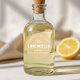 Étiquettes personnalisées pour limoncello avec texte personnalisé/message cadeau sur fond kraft brun rustique.