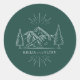 Sticker Rond Line Art Mountains Mariage Emerald Mariage