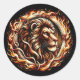 Sticker Rond Lion Flamboyant dans un Anneau de Flammes de Feu A
