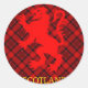 Sticker Rond Lion rouge écossais rampant sur Tartan