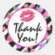 Sticker Rond Lipstick Distributeur Glam Rose Kiss Lips Merci